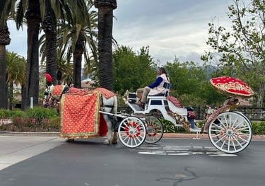 A horse and carriage in decoration is $1,000.00 for the first hour and a half from scheduled start time. We have a travel fee of $6.00 per mile one way. Our prep time is included in the pricing. Additional time with the horse and carriage is $250.00 per hour.