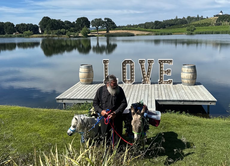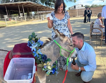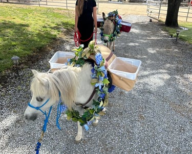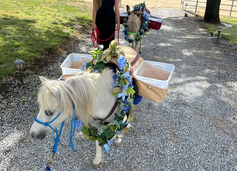 Beer Burros and Pony Kegs are donkeys and mini-horses equipped with pack saddles designed to carry beverages, party favors or other treats for your guests. Each animal can be dressed with flowers to match your event and a handler.