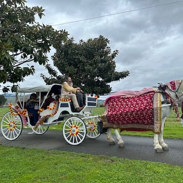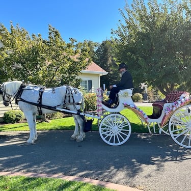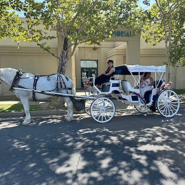 A Horse and carriage is $1,000.00 for the first hour and a half from scheduled start time. We have a travel fee of $6.00 per mile one way. Our prep time is included in the pricing. Additional time with the horse and carriage is $250.00 per hour.