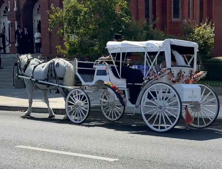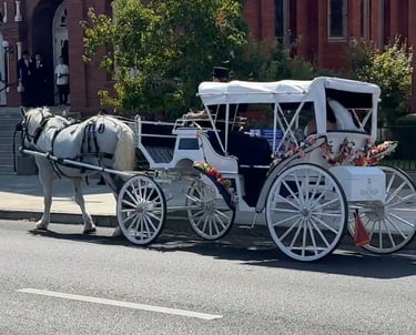 A horse and carriage in decoration is $1,000.00 for the first hour and a half from scheduled start time. We have a travel fee of $6.00 per mile one way. Our prep time is included in the pricing. Additional time with the horse and carriage is $250.00 per hour.